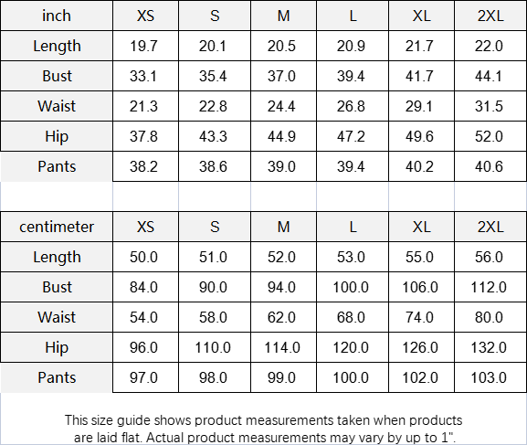 This size guide shows product measurements taken when products are laid flat. Actual product measurements may vary by up to 1".